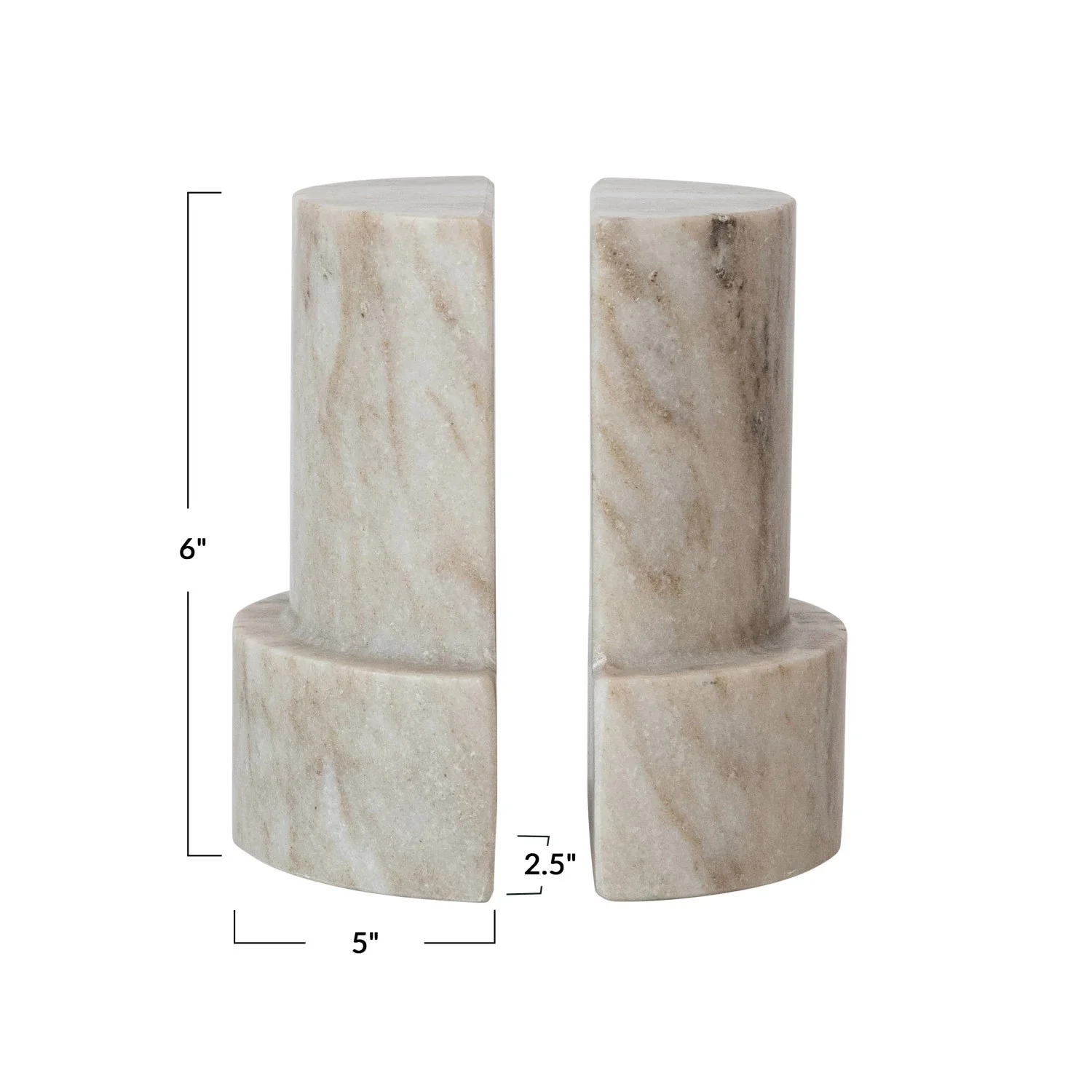 Nombre del catálogo: Sujetalibros de mármol en forma de columna, 12,7 cm de largo x 6,3 cm de ancho x 15,2 cm de alto, beige, juego de 2