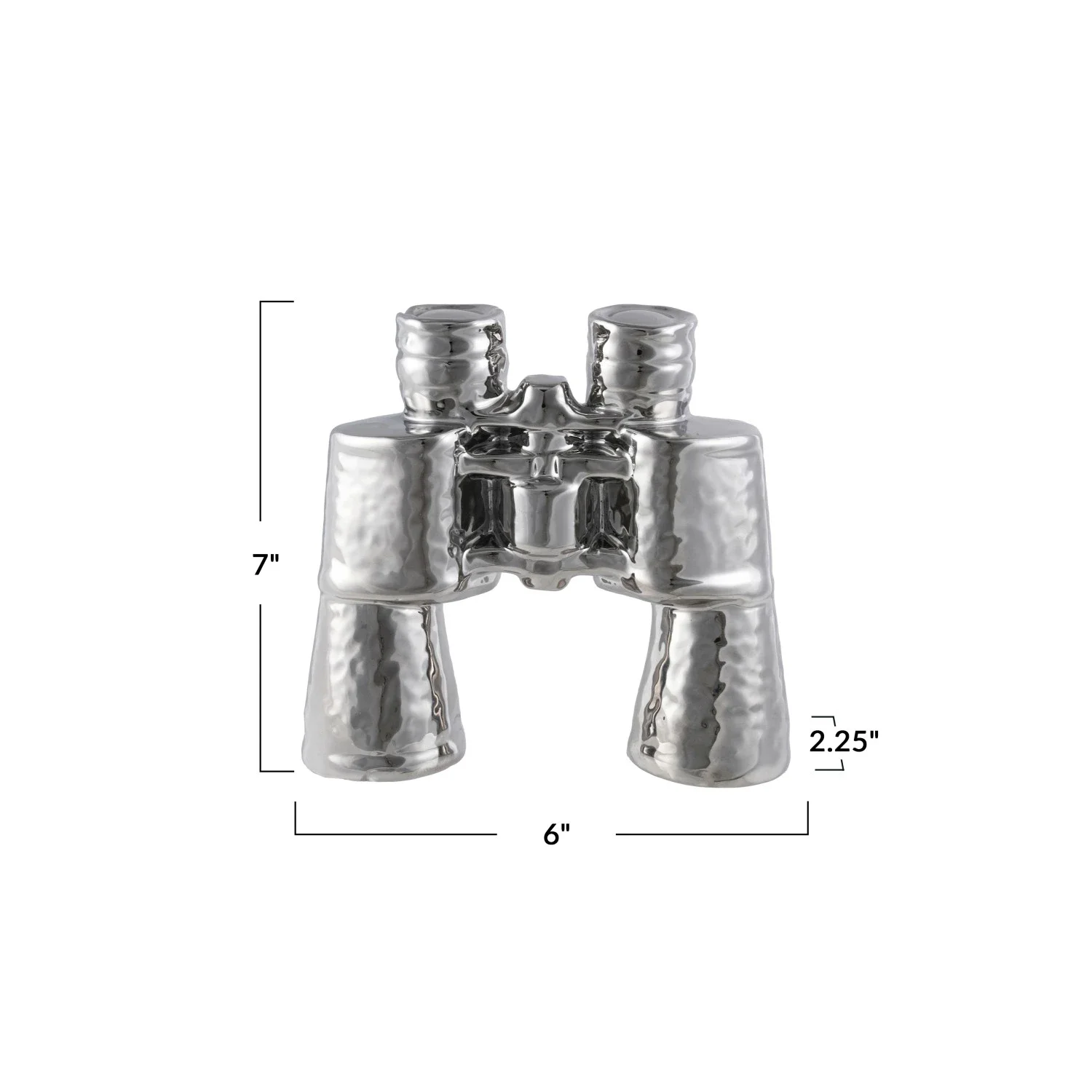 Nombre del catálogo: Binoculares de cerámica con decoración de 18 cm de largo x 15 cm de ancho x 6 cm de alto, acabado cromado